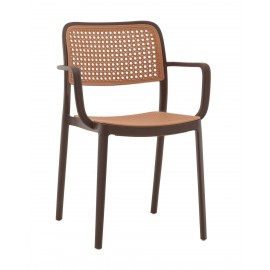 Yona сочетает в себе современный минимализм и винтажные мотивы. Плетёный эффект на сиденье и спинке в бежевом цвете напоминает классическую ротанговую мебель, но выполнен полностью из прочного пластик..