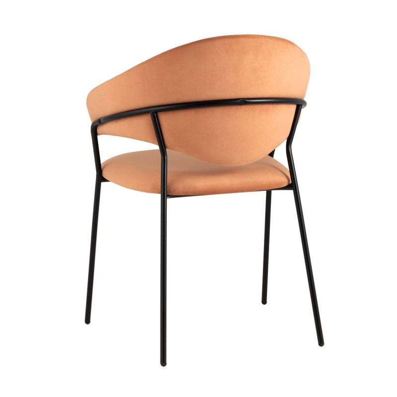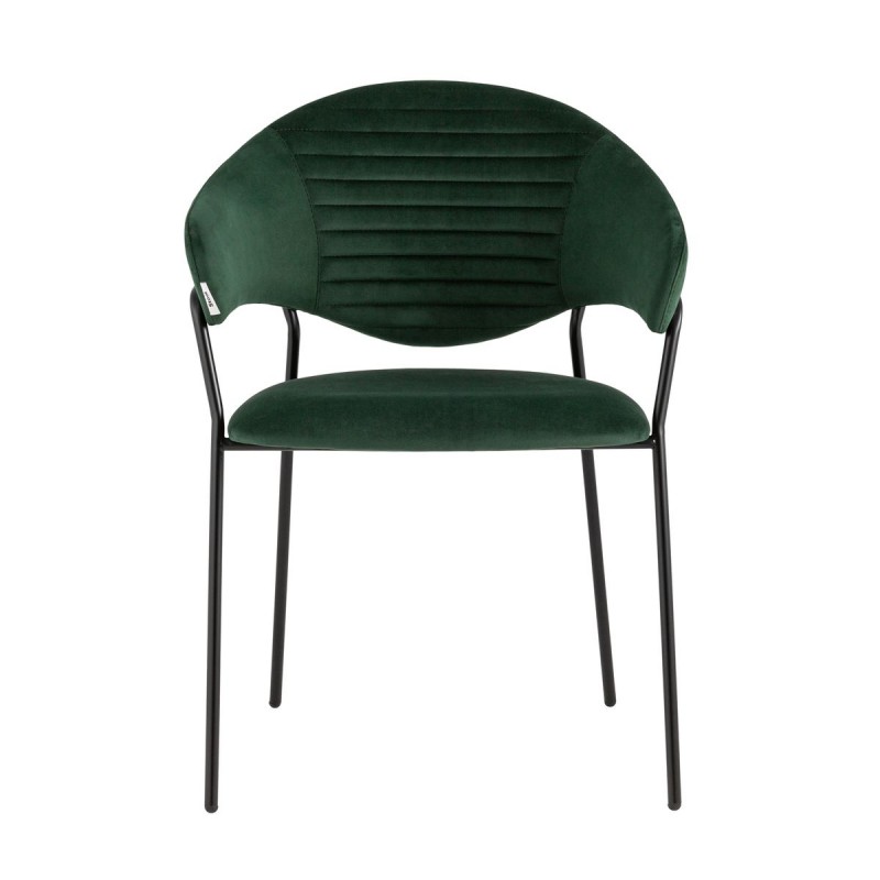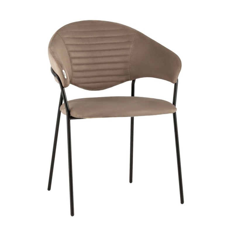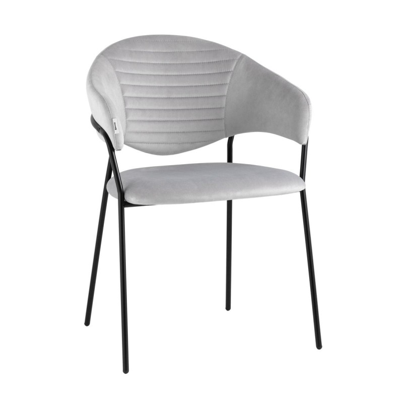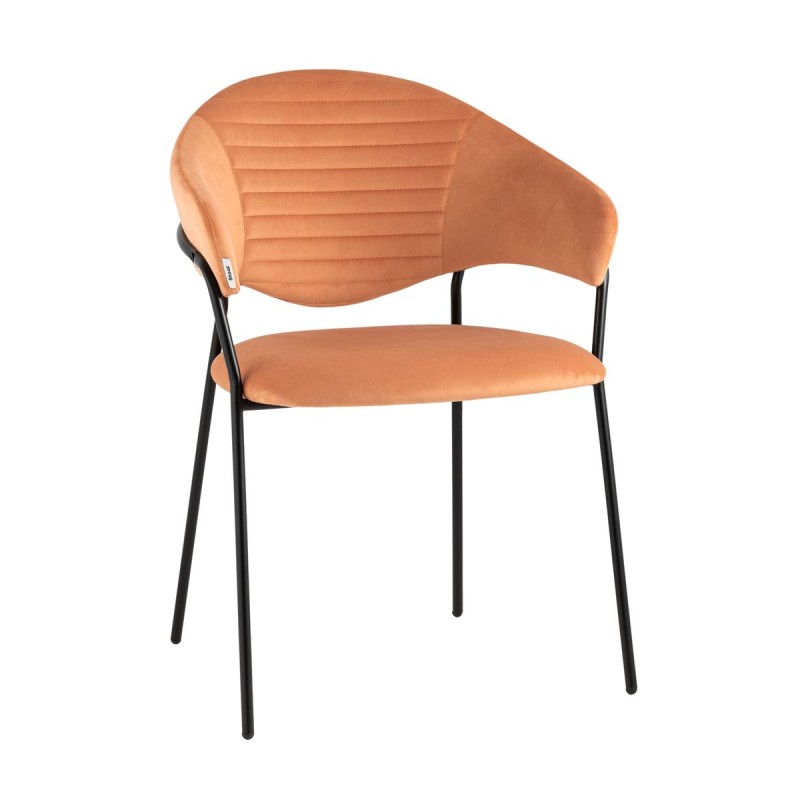 Стильный кухонный стул с оригинальной формой спинки, высокой поддержкой и подлокотниками. В качестве обивки используется мягкий велюр – приятный на ощупь износостойкий, гигроскопичный материал. Металлический каркас в черном цвете огибает спинку и выступает аккуратным акцентом модели. Широкое сиденье обеспечивает удобную посадку и уют.и.
