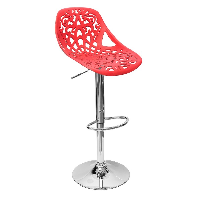 Элегантный барный стул Кружево с ажурным сиденьем из прочного пластика станет украшением как Вашего дома, так и Вашего кафе, ресторана. Каркас с подножкой для ног выполнен из хромированного металла. Оснащен механизмом регулировки высоты (газлифт) в пределах 85-105 см.