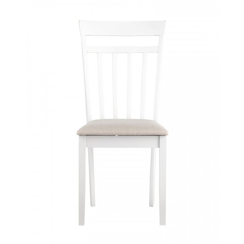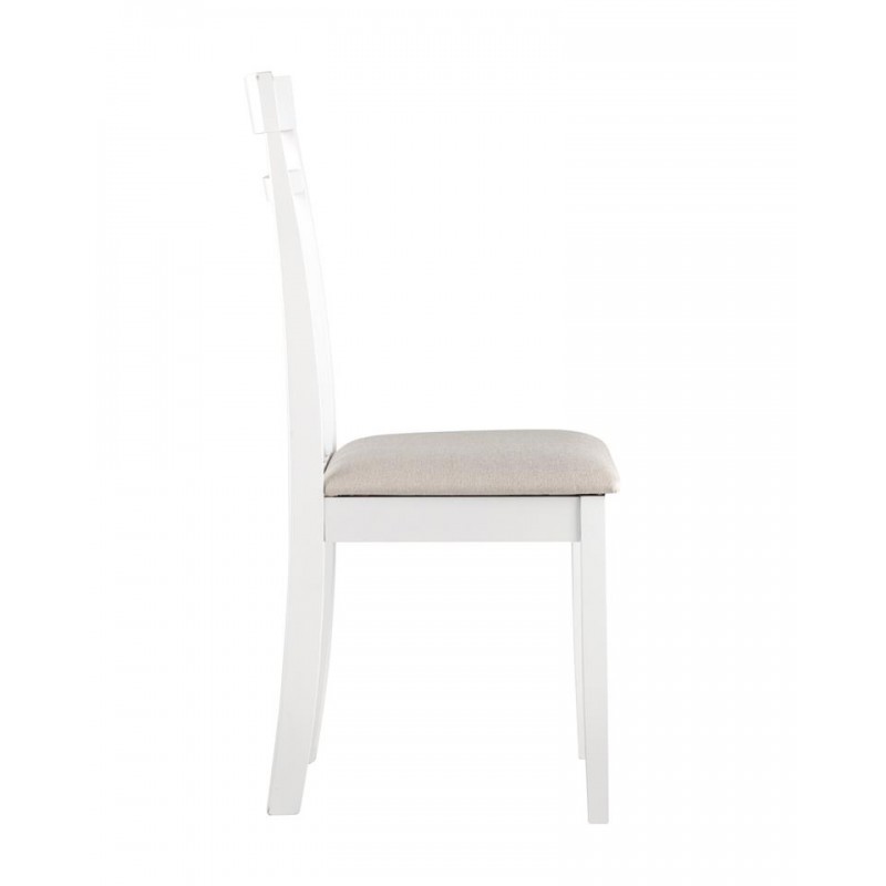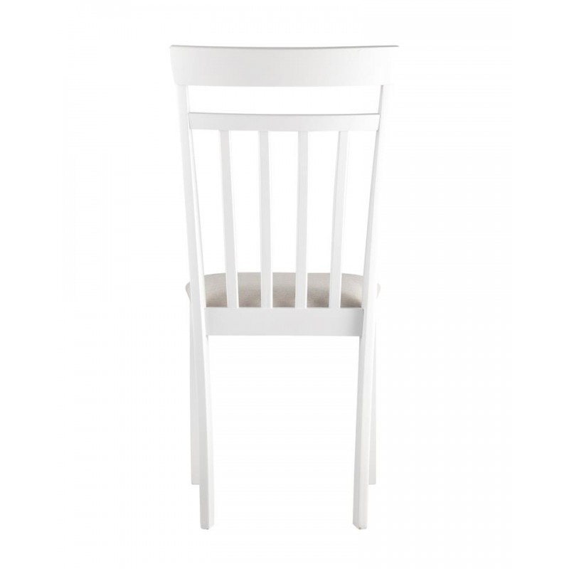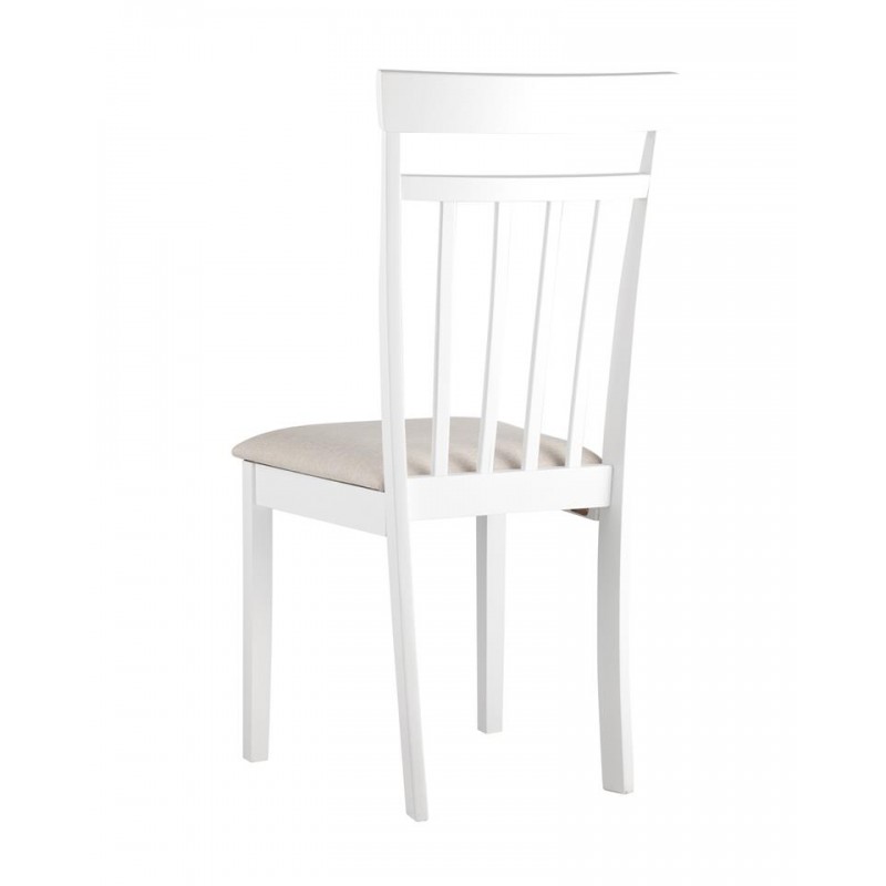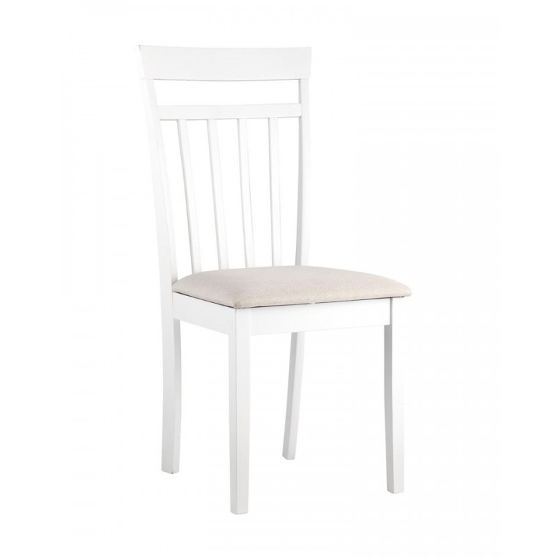 Стул с мягким сиденьем, обивка выполнена из рогожки. Белый каркас - массив гевеи.