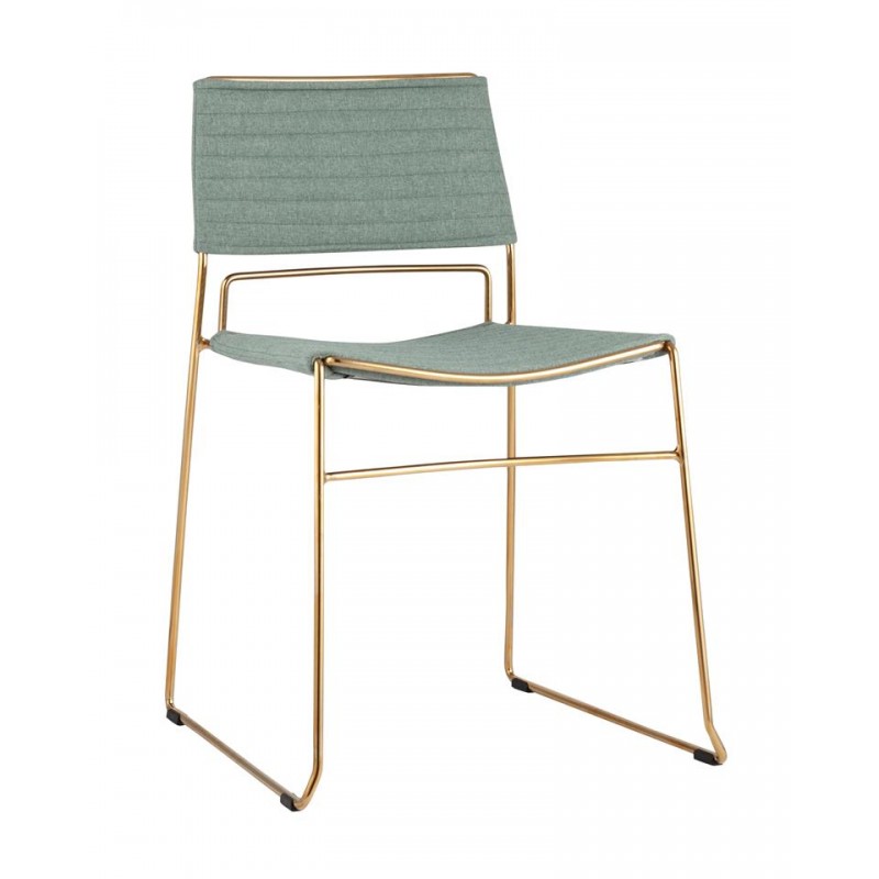Модель с ярким дизайном и красивым сочетанием ткани рогожки и золотых изящных ножек. Широкая сиденье и высокая спинка позволяют расположиться с комфортом. Металлический каркас делает стул надежным и позволяет выдержать вес до 150 кг.