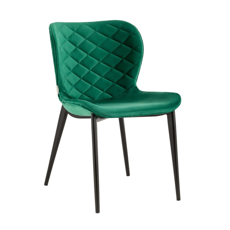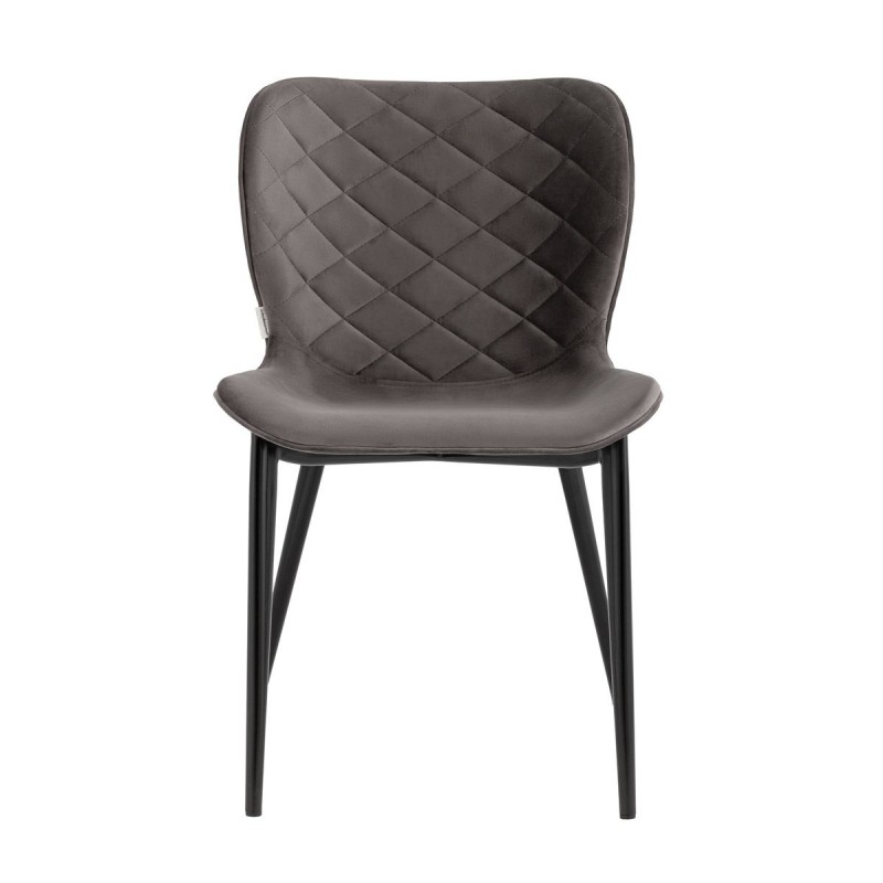 Легкий и стильный дизайн обеденного стула Гамми без подлокотников подойдет для обустройства кухонной зоны и ресторанов, а также любого современного интерьера. Мягкий изгиб спинки гармонично сочетается с металлическим каркасом и ножками, окрашенными в черный цвет. Обивка выполнена из прочного, износостойкого велюра. Внутренняя сторона спинки декорирована строчкой в виде ромбов. Ножки оснащены подпятниками, что предотвращают скольжение и повреждение напольного покрытия.