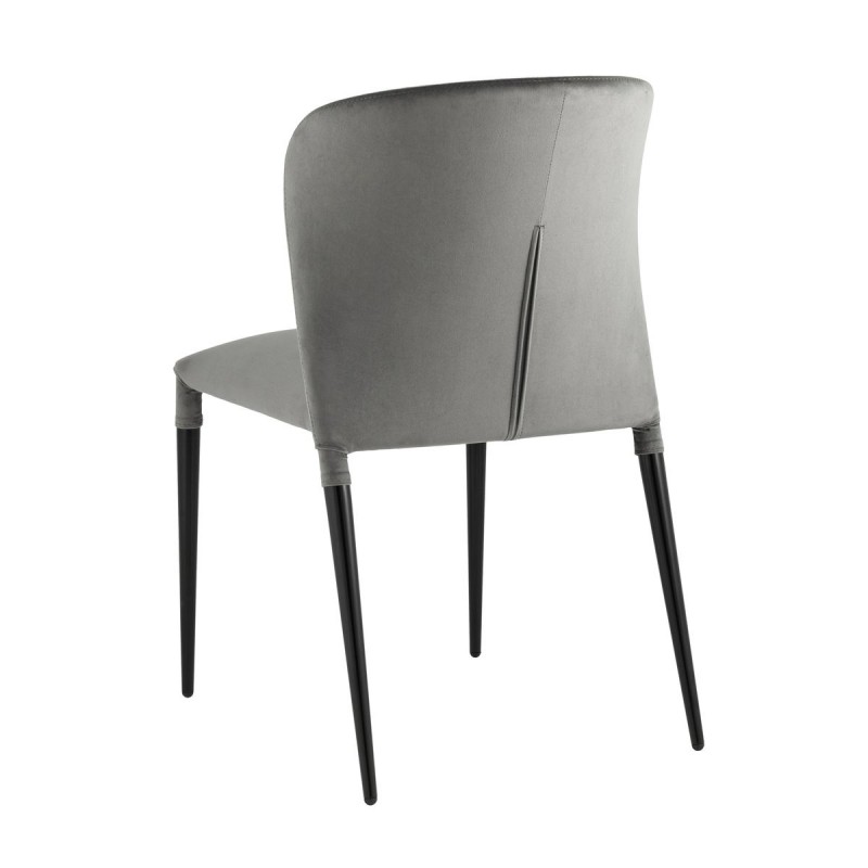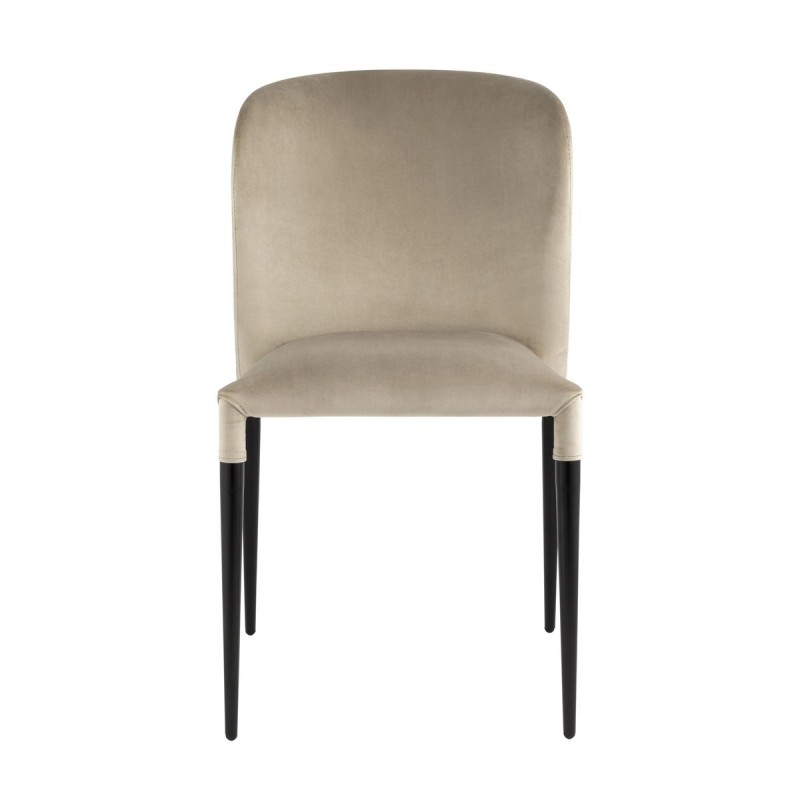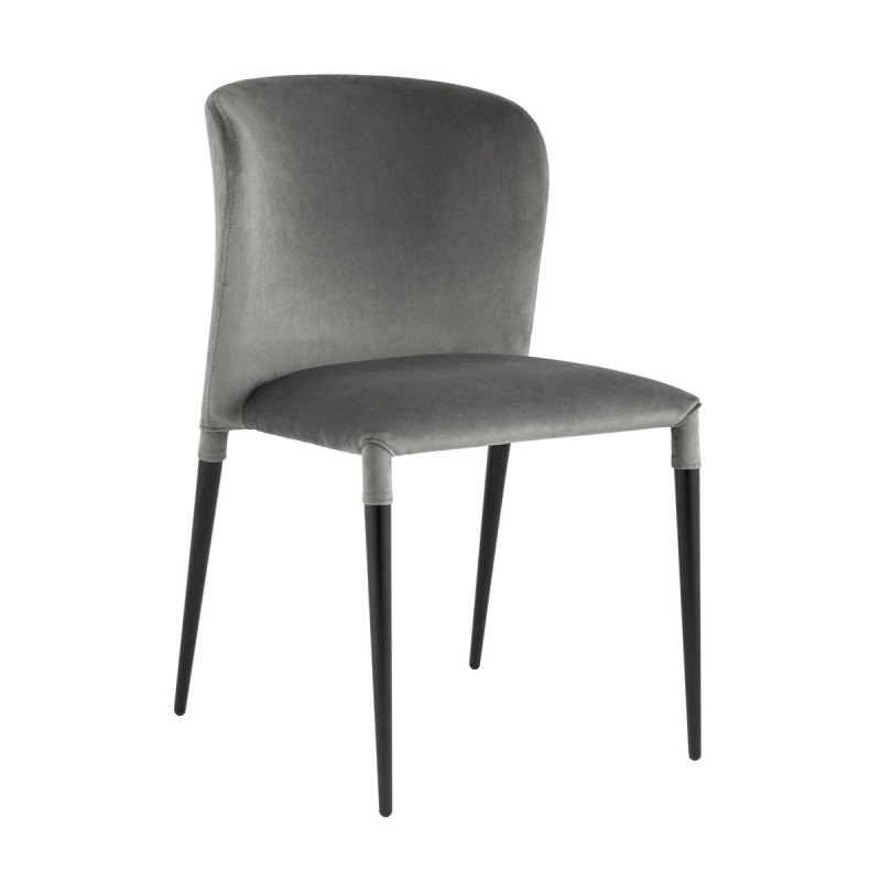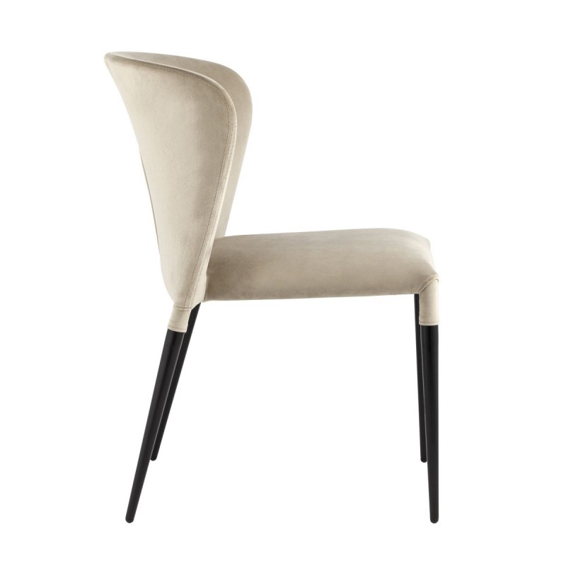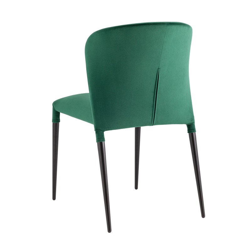 Обивка стула выполнена из велюра. Материал тактильно приятный, износостойкий, прост в уходе и быстро восстанавливает первоначальную форму. Ножки изготовлены из металла в черном цвете. Закругленная эргономичная спинка с выступающими по бокам элементами обеспечивает максимальный комфорт. На ножках предусмотрены специальные подпятники, которые предотвращают скольжение и не царапают напольное покрытие.