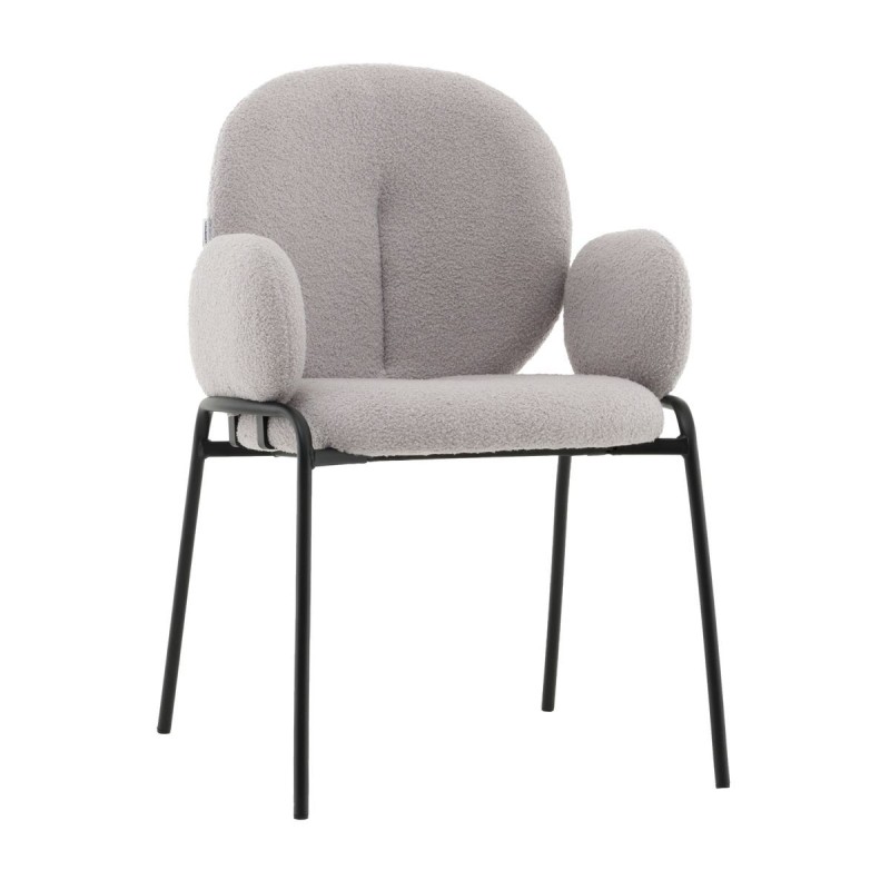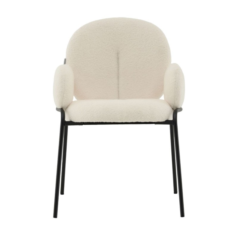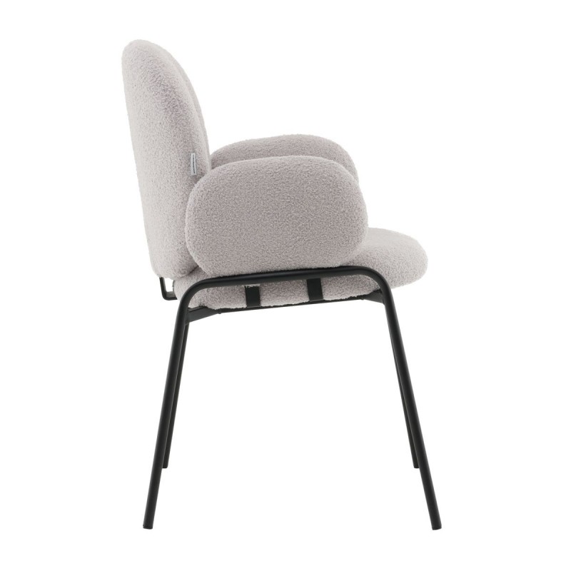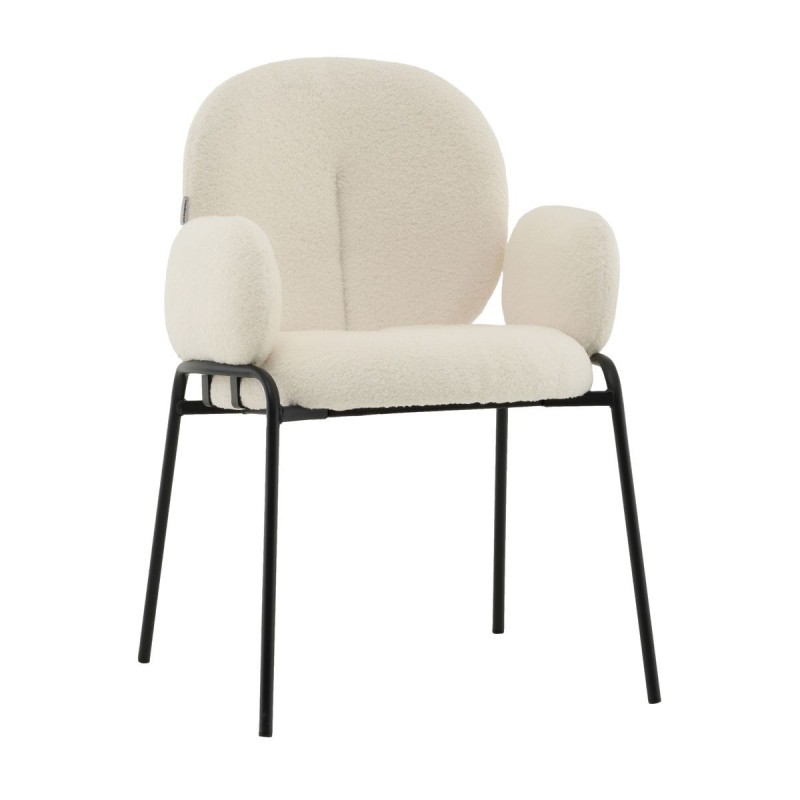 Моллек — это современный стул в лаконичном дизайне, выполненный в стиле минимализм. Мягкая трендовая обивка из ткани букле в молочном оттенке и плавные округлые формы спинки, сиденья и подлокотников создают ощущение уюта и изящности. Модель особенно актуальна для тех, кто ценит не только эстетику, но и комфорт в повседневном использовании. Каркас выполнен из прочной стали с черным матовым покрытием, что делает стул устойчивым и долговечным. Благодаря наполнителю из ППУ сиденье остаётся упругим и удобным даже при длительном сидении. Максимальная нагрузка на стул составляет 120 кг — он легко справляется с интенсивной эксплуатацией как в домашних, так и в общественных интерьерах. На ножках предусмотрены специальные подпятники, которые защищают напольное покрытие от царапин и предотвращают скольжение. Замок на задней части спинки служит декоративным элементом и не предназначен для снятия обивки. Стул Моллек органично впишется в интерьер дома, а также будет уместен и для общественных пространств. Универсальный внешний вид и продуманная эргономика делают его отличным решением для самых разных интерьеров.