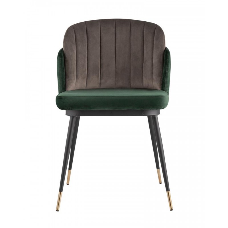 Мягкий двухцветный стул с обивкой из вельвета. Надежная опора достигается благодаря металлическому каркасу и удобным устойчивым ножкам. Спинка состоит из двух элементов, внутренняя часть с красивой вертикальной строчкой.