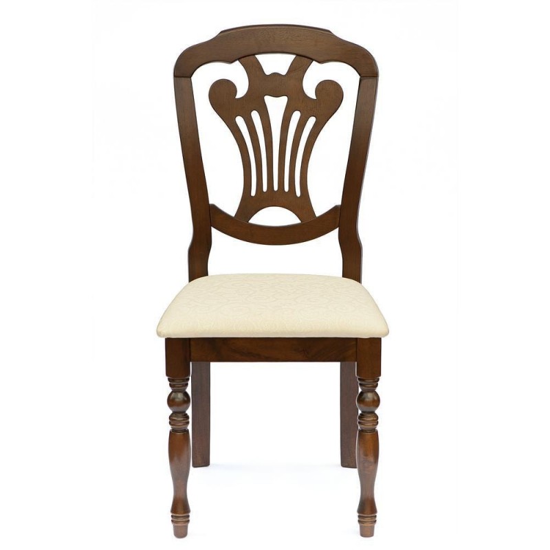 Деревянный стул в цвете орех с резной спинкой и мягким сиденьем контрастного молочного цвета. Ручное исполнение узора придает модели индвидуальности и дополнительного изящества. Кроме того, стул практичен и прочен. Стул прослужит долгие годы без специального ухода.
