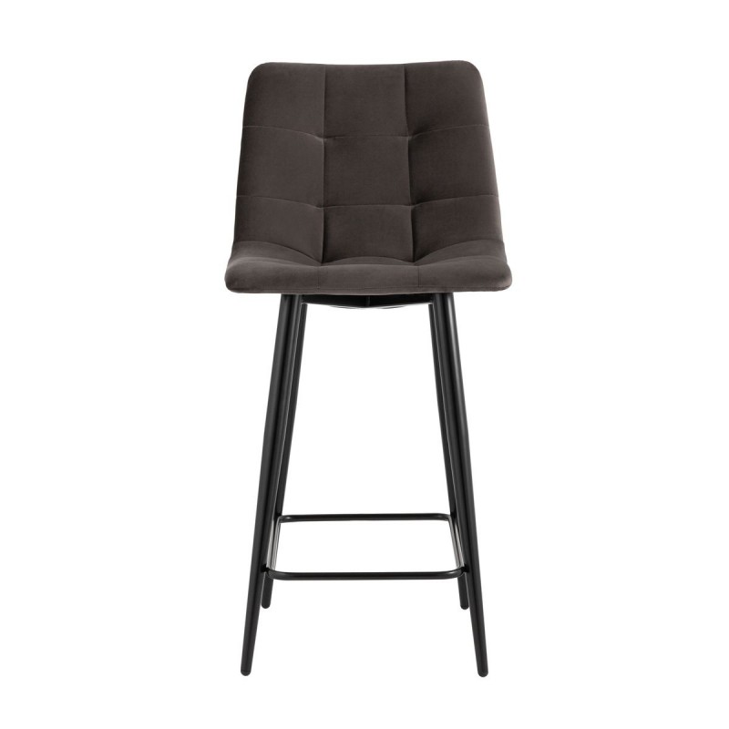 Лаконичный полубарный стул с обивкой из велюра без подлокотников. Плавная форма сиденья и спинки обеспечивают комфортную посадку. Красивая строчка на внутренней стороне велюровой обивки, эргономичная спинка, аккуратное исполнение и качественные материалы. Ножки выполнены из металла.