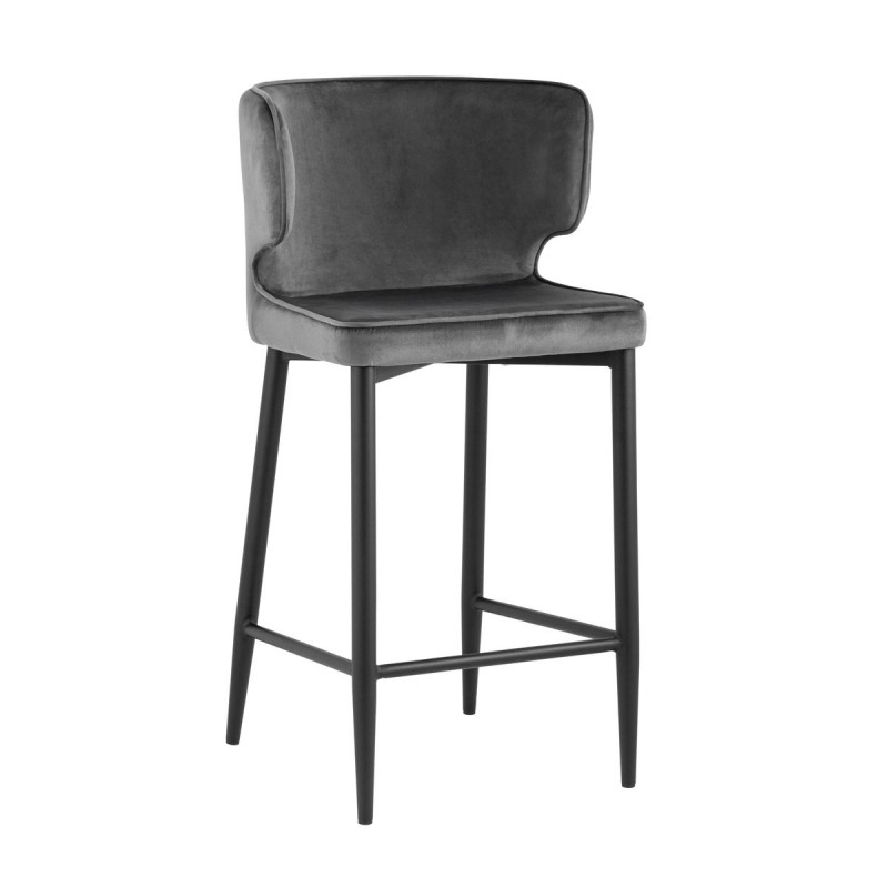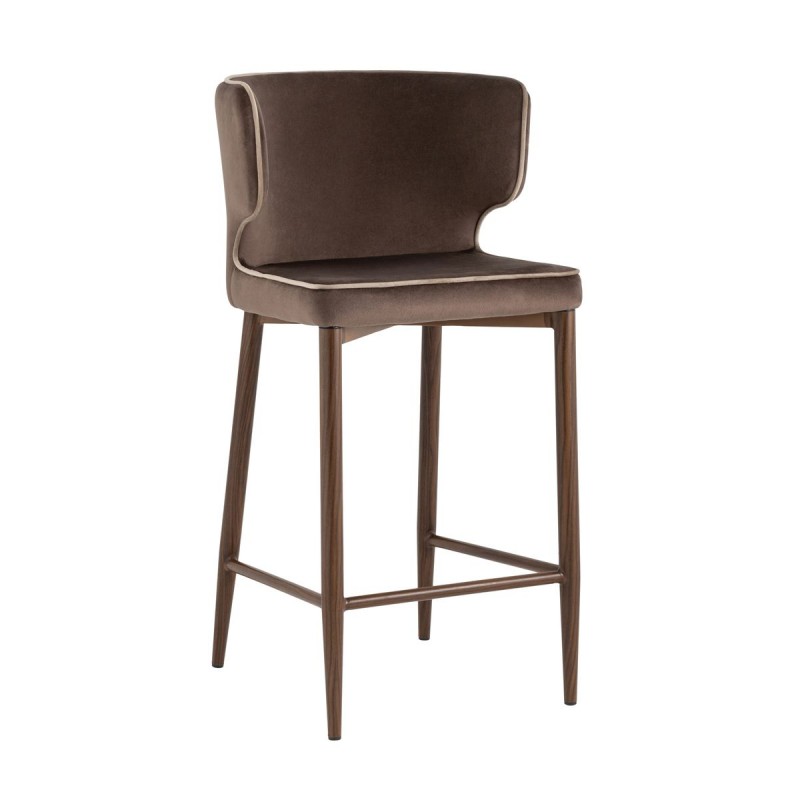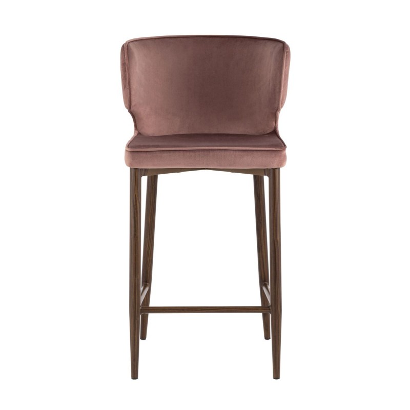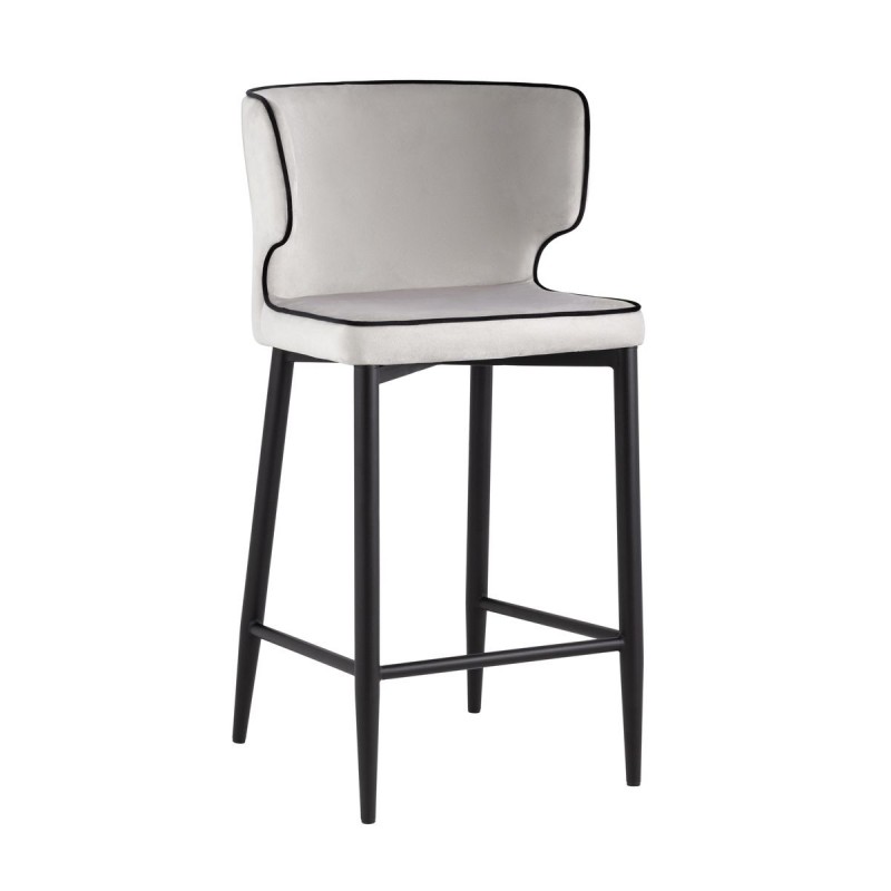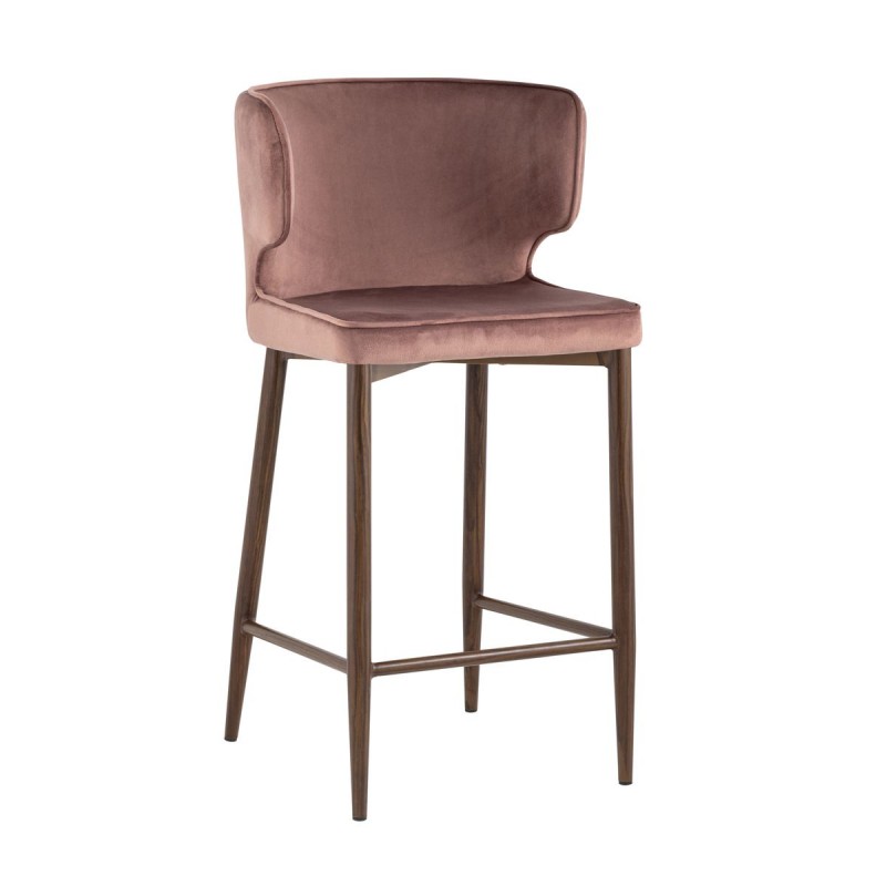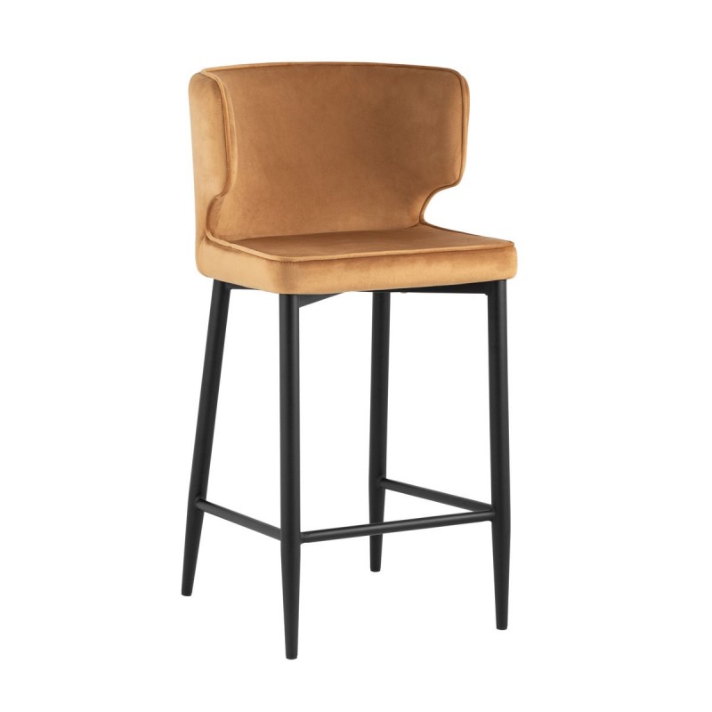 Мягкая обивка выполнена из велюра - прочного износостойкого материала. Прямые металлические ножки в черном цвете имеют нестандартную форму в виде перевернутого конуса, поэтому обеспечивают хорошую устойчивость и делают стул оригинальным. Удобная подножка позволяет расположиться максимально комфортно.Оригинальная форма спинки с выступающими элементами создает ощущение уюта. Изделие прекрасно дополнит интерьер кухни или кафе.