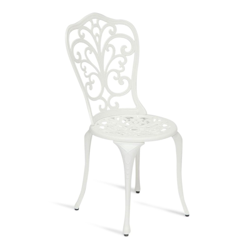 Изящный силуэт и идеальные пропорции стула Secret De Maison Mozart из коллекции JARDIN добавят благородства в ваш ландшафтный дизайн, подчеркнут вкус и статус своего владельца. Идеальное сочетание кованого ажурного орнамента, выполненного вручную, и прочного металлического каркаса из литого алюминия, покрашенного в белый цвет, выглядит дорого и элегантно, придает стулу изысканность и особенную красоту. Удобная спинка располагает к приятному времяпрепровождению и комфортному отдыху на свежем воздухе. Стул практичен, надежен, способен выдерживать большие нагрузки, прост в уходе. Модель прекрасно сочетается с мебелью из коллекции JARDIN, поставляется в разобранном виде. Для вашего удобства на сиденье можно дополнительно приобрести декоративную подушку из нашей коллекции текстиля.