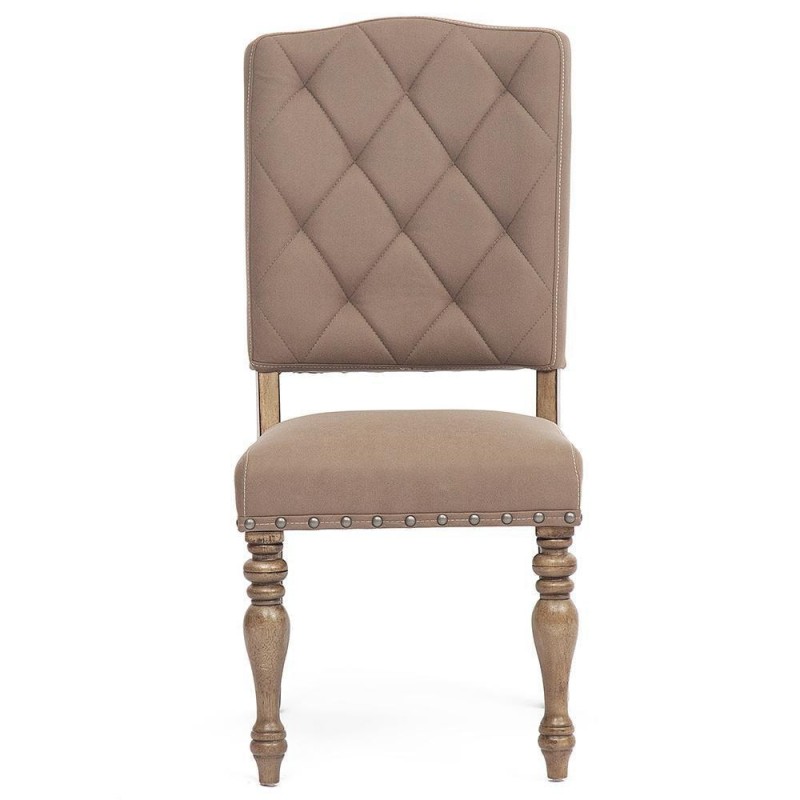 Стул в неоамериканском стиле из натурального дерева гевеи с большим и удобным мягким сидением и спинкой, с обивкой из бежевой ткани, с капитоне и украшенный декоративными гвоздиками. Объем: 0,11, 2 шт. в 1 кор.
