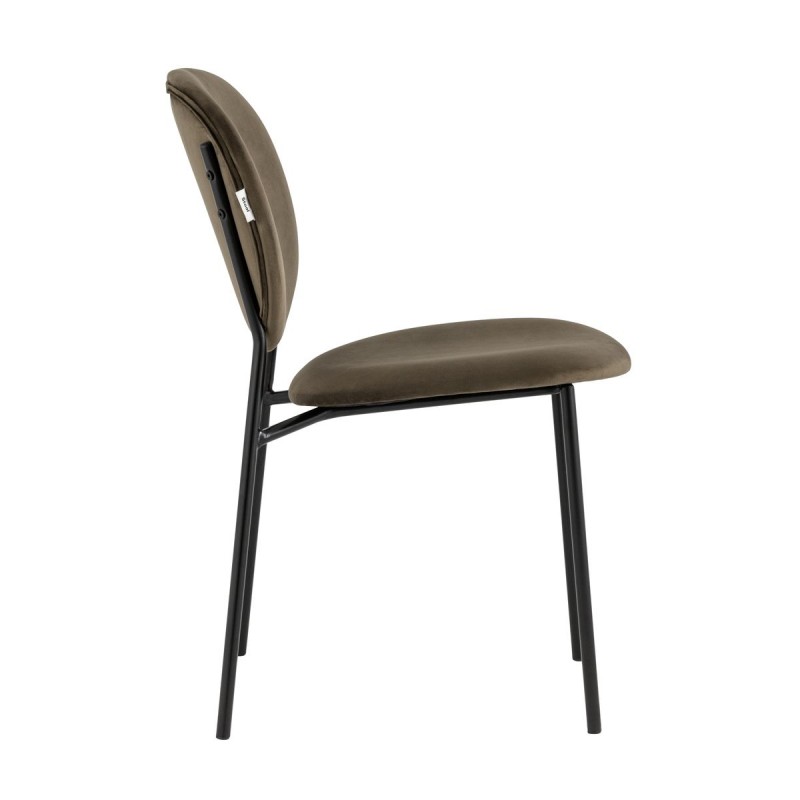Обивка выполнена из прочного износостойкого велюра, ножки изготовлены из металла в черном цвете. На ножках дополнительно предусмотрены специальные подпятники, которые предотвращают скольжение и повреждение напольного покрытия.