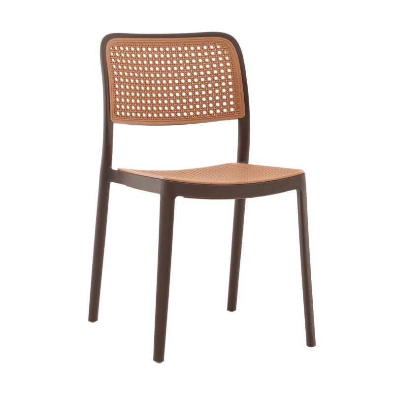 Yona сочетает в себе современный минимализм и винтажные мотивы. Плетёный эффект на сиденье и спинке в бежевом цвете напоминает классическую ротанговую мебель, но выполнен полностью из прочного пластика — это стильное переосмысление традиции в современном ключе. Коричневый каркас придаёт модели тёплый и натуральный вид, который отлично впишется как в интерьер, так и в уличную обстановку. Спинка и сиденье имеют слегка изогнутую форму для удобной посадки. Стул изготовлен из качественного пластика, который устойчив к влаге, солнечному свету и механическим повреждениям. Лёгкий по весу, но прочный, он выдерживает нагрузку до 120 кг, оставаясь надёжным решением для повседневного использования. Стулья Yona можно стопировать, что значительно облегчает их хранение и перевозку. Это особенно важно для кейтеринга, кафе, ресторанов и любых мероприятий с массовой рассадкой гостей. Yona прекрасно подойдёт для дома, кухни, сада или террасы. Он будет уместен в учебных заведениях, на конференциях, выставках, банкетах и форумах — везде, где ценятся стиль, удобство и практичность. Стул Yona — это современный взгляд на классический дизайн, который добавит уюта и характера любому пространству.
