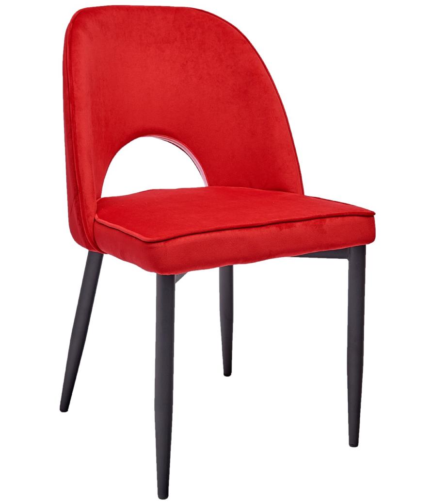 Обеденный стул в мягкой обивке из велюра без подлокотников.Ножки черные, изготовлены из металла. Удобная форма сиденья, поддерживающая спинка. Лаконичный дизайн стульев подойдет к обеденному столу люб..
